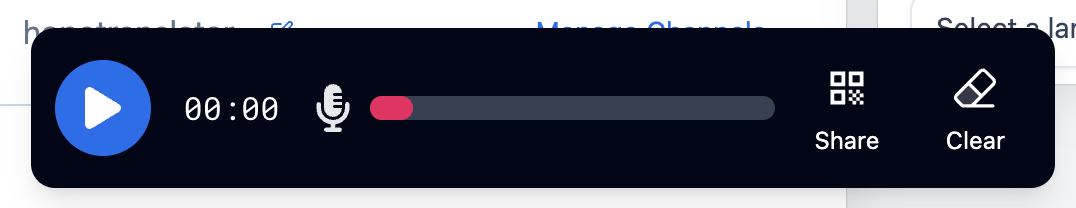 Übersetzung starten: Startet Echtzeit-Transkription und -Übersetzung. Ihr Publikum sieht den Text (und optional die KI-Stimme) in den gewählten Sprachen.